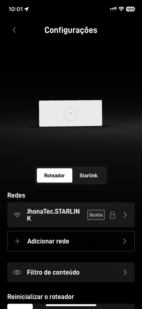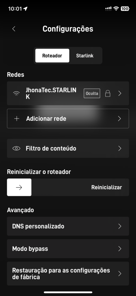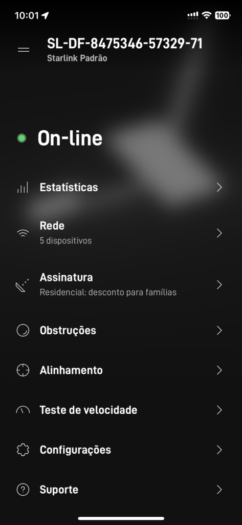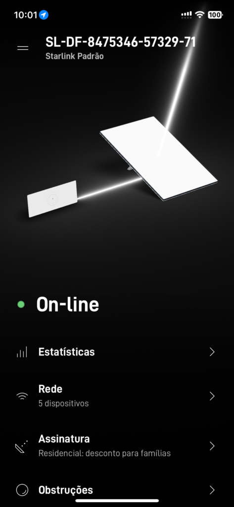 Comece abrindo seu aplicativo da StarLink, e vamos rolar para as últimas opções até achar o botão “Configurações” ou “Settings”.