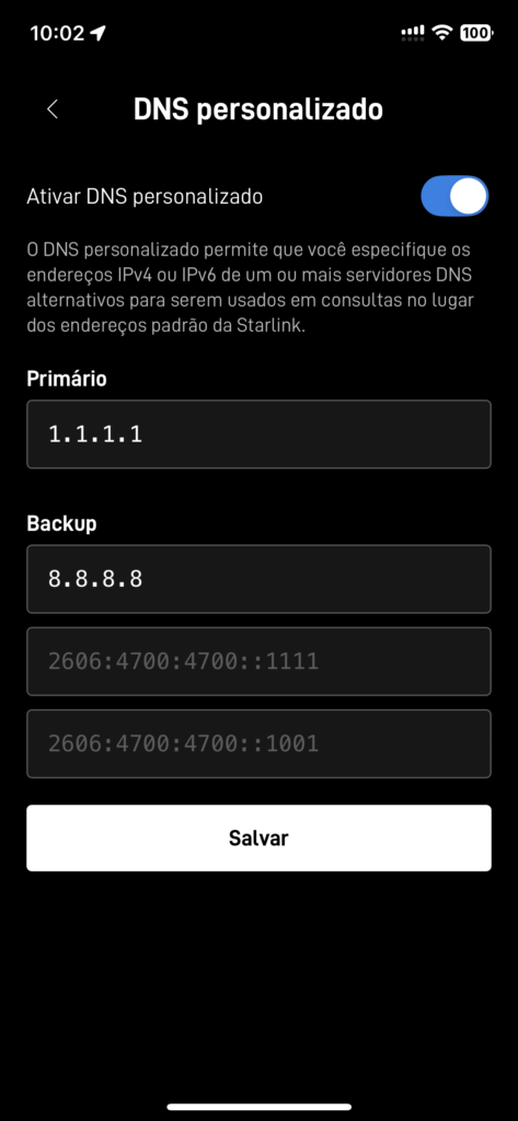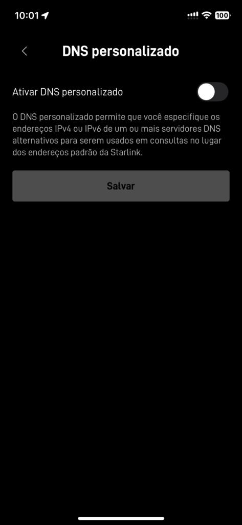 Agora que estamos na tela de Configurações, vamos rolar também até o final para a opção de “DNS personalizado” ou “Custom DNS