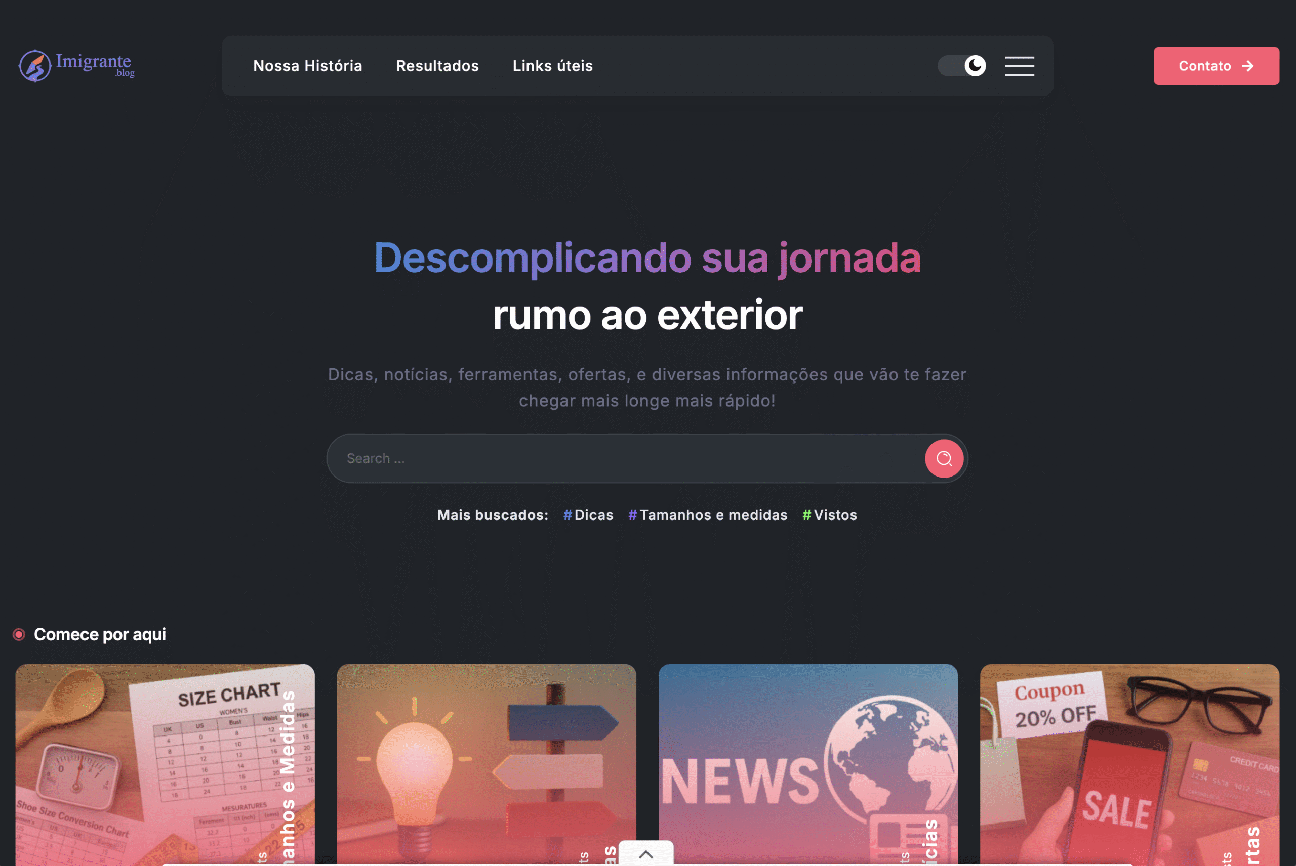 Portal para divulgar dicas, links e informações úteis para quem sonha em viajar e morar nos EUA ou Canadá.