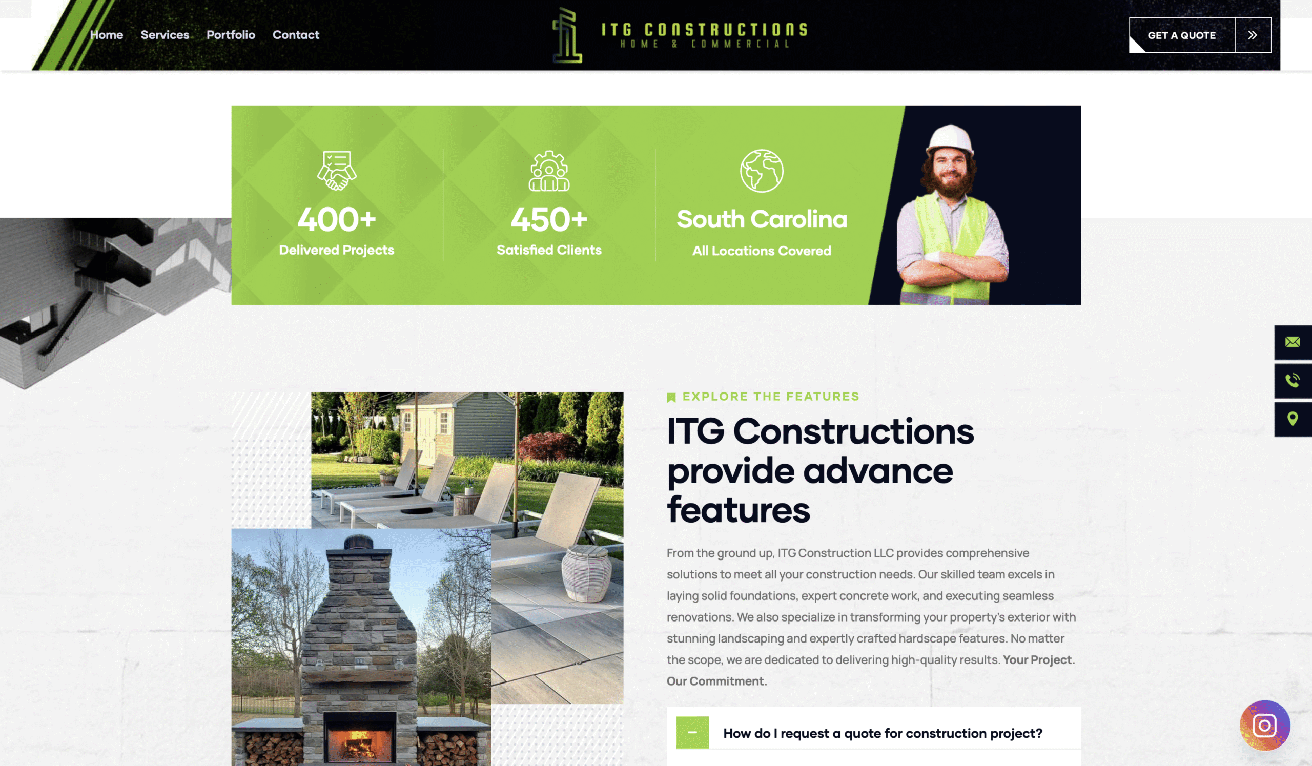 ITG Construction fica sediada em SummerVille, SC com mais de 4 anos de experiência em landscaping, hardscape, renovation, foundation e concrete. Hoje ela atende o estado inteiro de South Carolina.