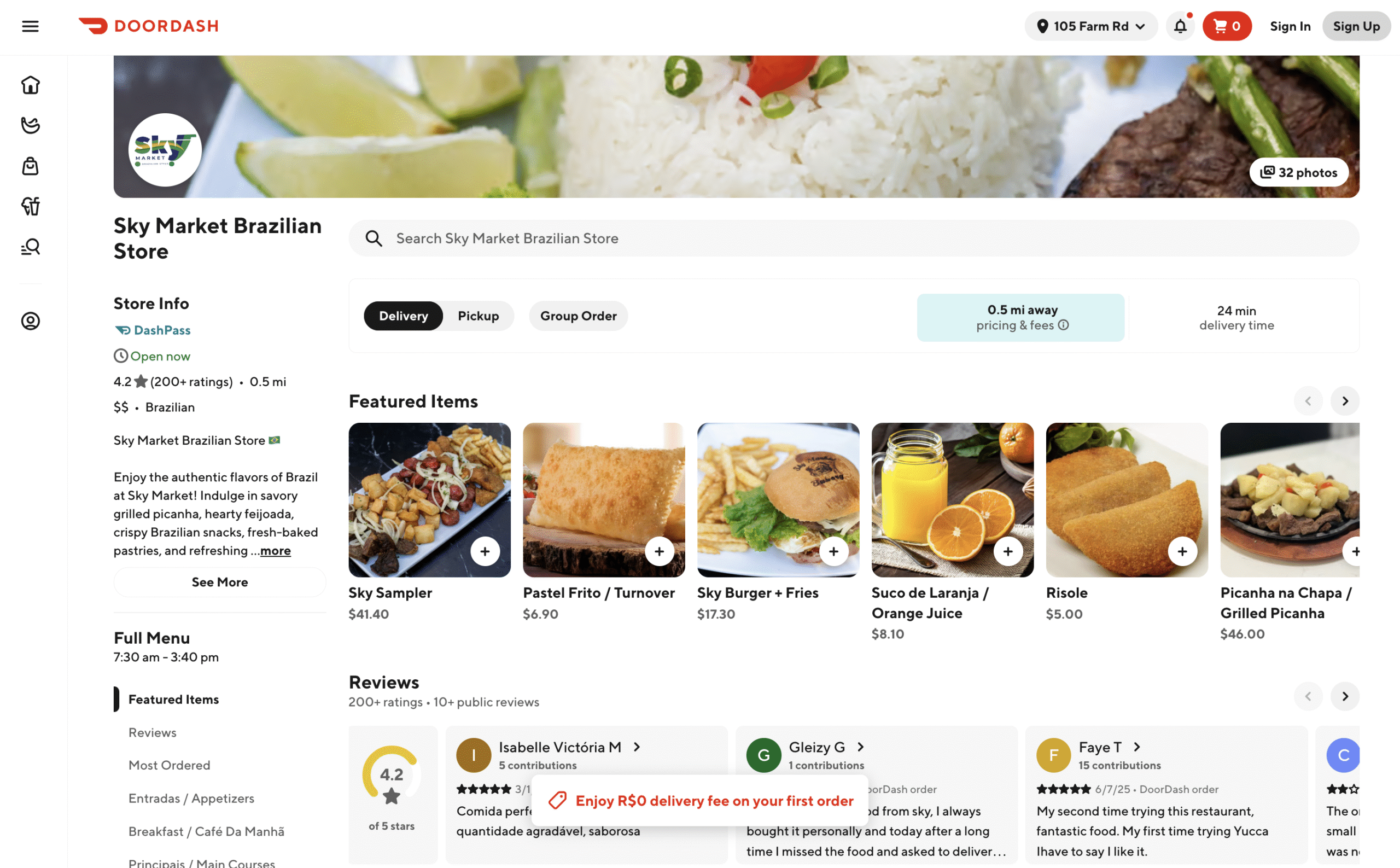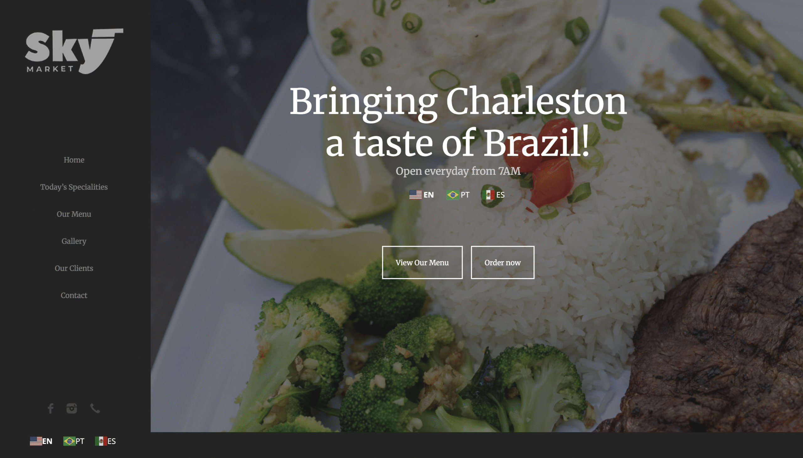 Fundado em uma área com mutos brasileiros (Goose Creek), o restaurante usa seu site em inglês/espanho/português para atrair o público da região com suas receitas caseiras brasileiras.